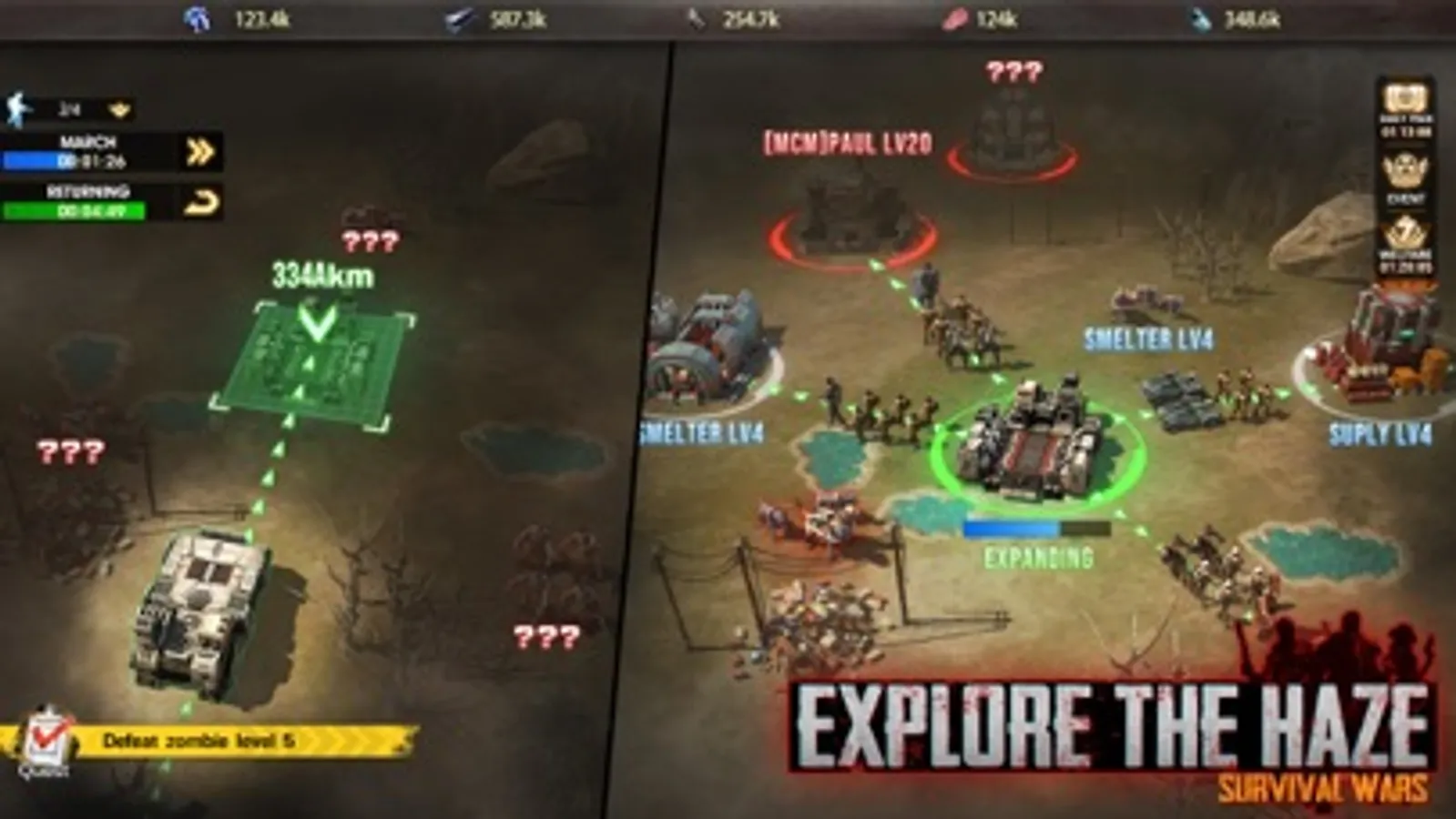 In this game, everything hides under the thick haze, such as resources, zombies, bandits and conspiracies. To survive, you need to drive your MCV to explore the haze, but be careful, cunning enemies may ambush you there as well! And you must unite your allies to occupy watchtowers and fortresses to expand your sight and gain an edge in the war.