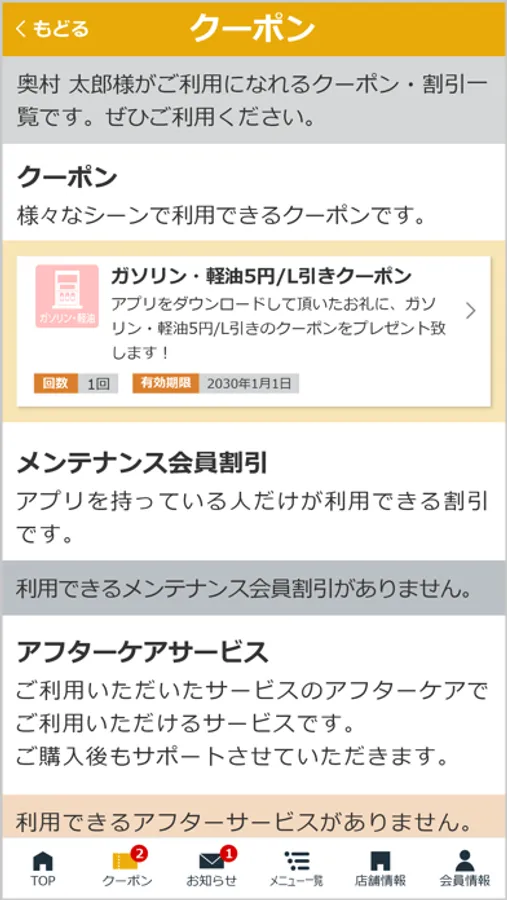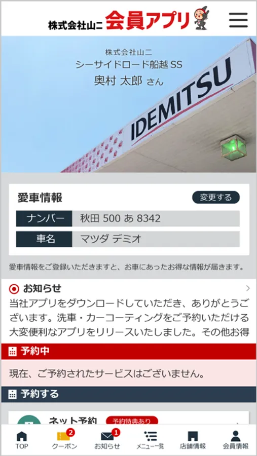 お客様一人ひとりの快適なカーライフのため、「株式会社山二会員アプリ」を通じて充実のサービスを提供いたします。