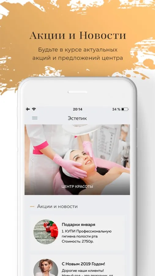 Акции и новости - информация и получение push-уведомлений обо всех актуальных акциях и новостях центра "Эстетик.