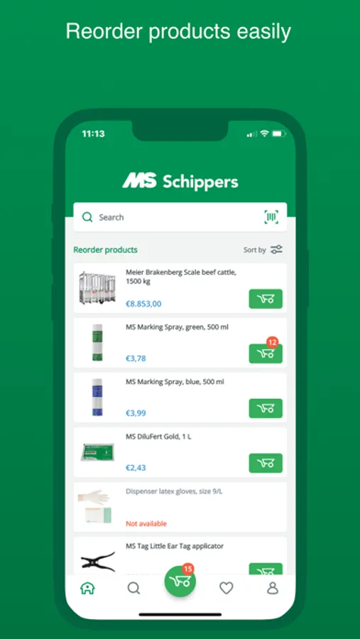 As a farmer, your days are busy. To make ordering products super easy for you, we have developed the MS Schippers app. An easy ordering app with a complete assortment for pigs, cattle, poultry, sheep and goats.