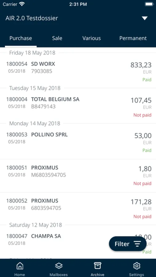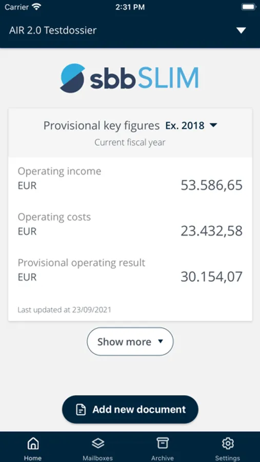 You can use this app to upload expense receipts and invoices, consult the document archive and view your key figures.