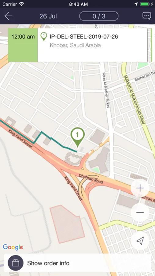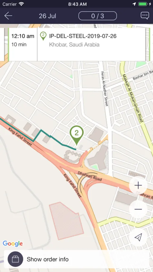 - observe orders and estimated routes on the map;