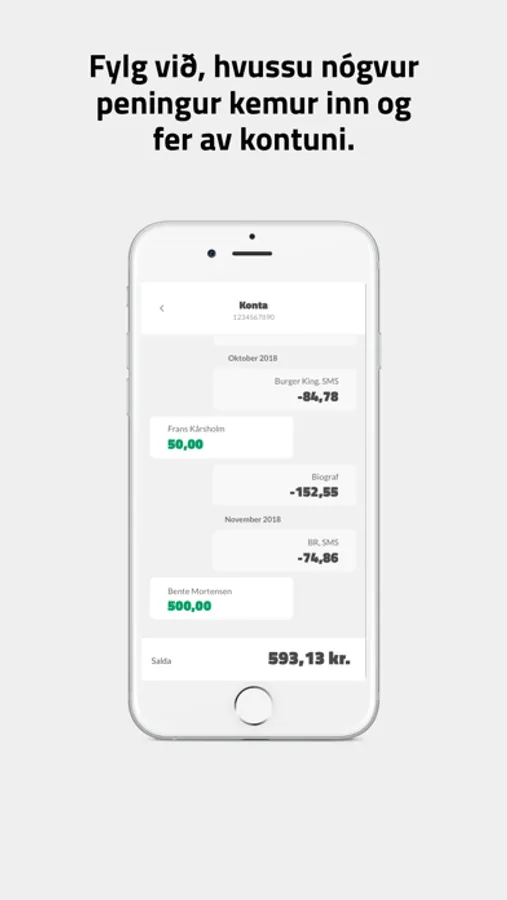 Mín peningur er ein app til børn frá 7 ára aldri. Við appini ber til at síggja, hvussu nógvur peningur er á kontu, fáa yvirlit yvir nýtsluna, broyta vangamynd og bakgrundsmynd. Tað ber ikki til at gera flytingar við appini.