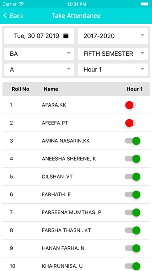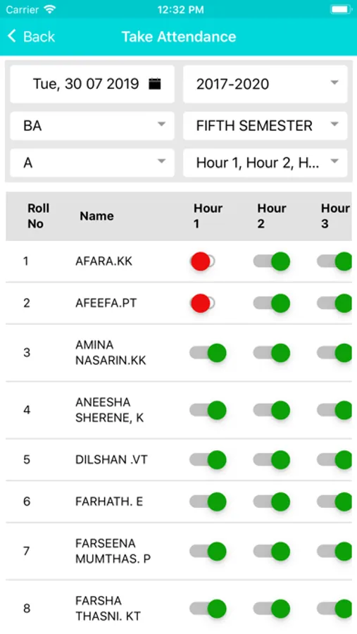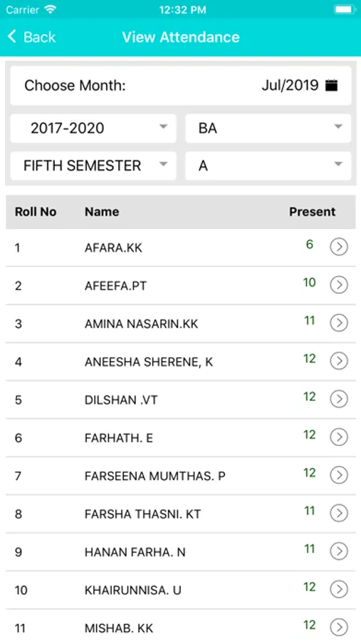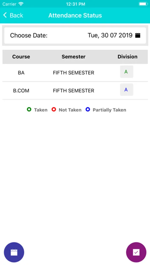 College Attendance Screenshots