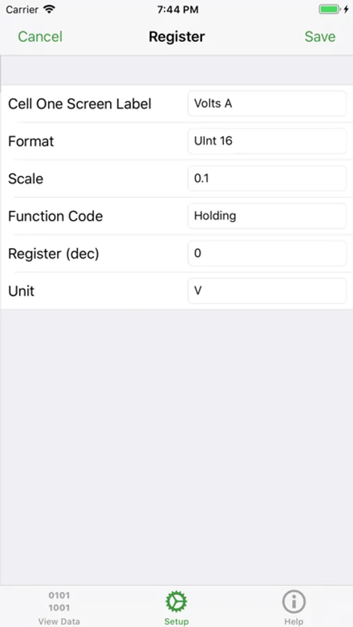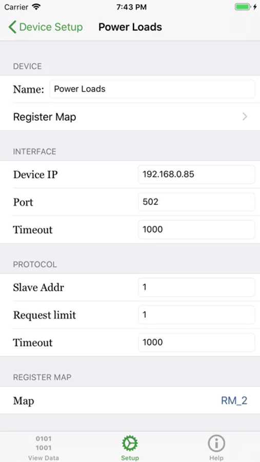 Ezmodbus is an easy to use Modbus app that lets you setup and save devices directly on your phone. Set up the device and the register map for text display directly on your phone and save the device and register map right on the phone for immediate and later use. All setup is permanently saved on the phone for convenient access at any time.