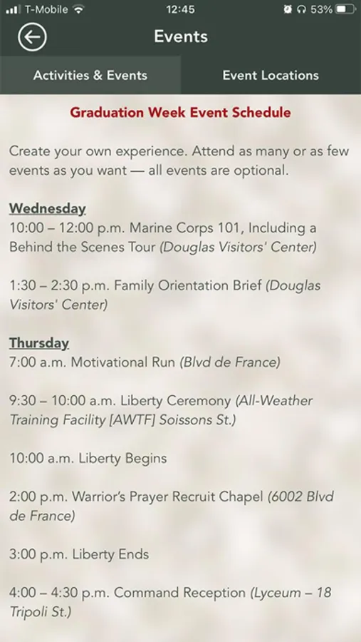 To help both new and experienced military families navigate this sometimes unfamiliar territory, we developed a three day program with activities and events to make you feel welcome and knowledgeable. Get a peek into the life of a recruit going through training, discover programs that support Marine families, and learn what to expect after Graduation with our events.
