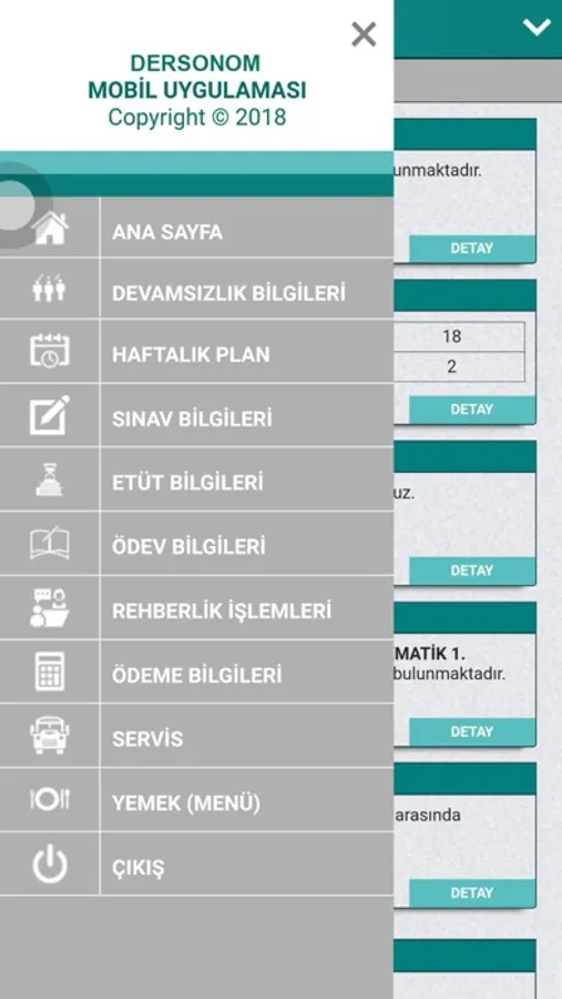 YEMEK – Aylık, Haftalık ve Günlük yemek bilgilerinin yer aldığı bölümdür.