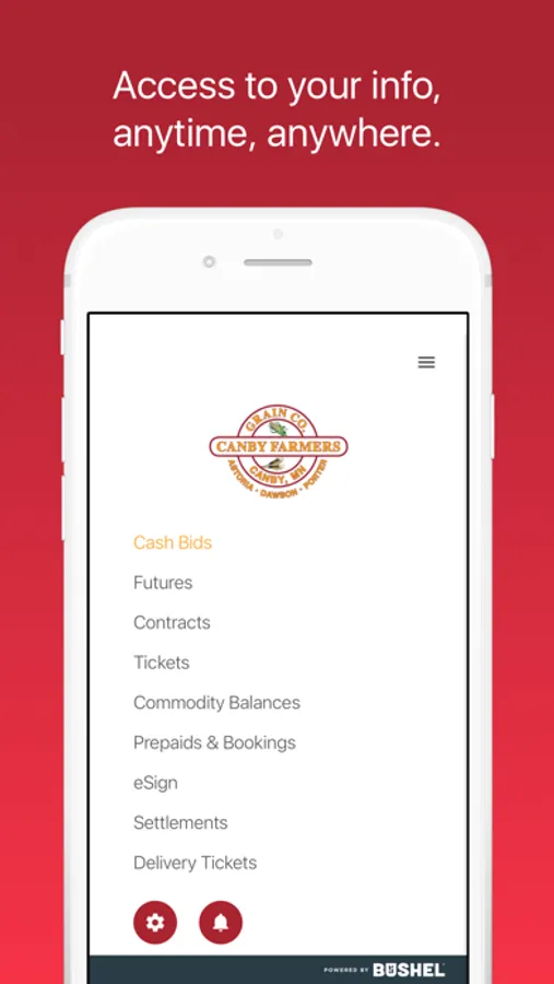 The Canby Farmers Grain Co. app is free, secure, and developed by the industry-leading Bushel platform.
