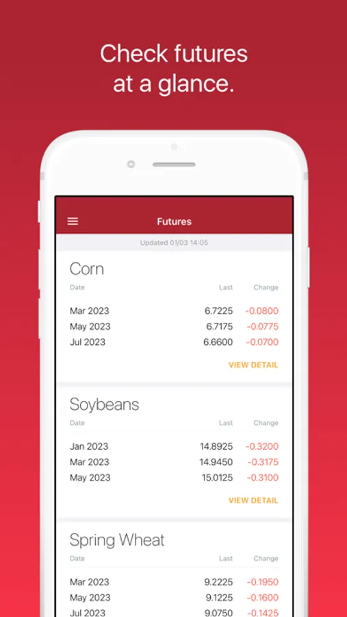 Futures: See Grains, Feed, Livestock, and Ethanol futures listed in order of your preference