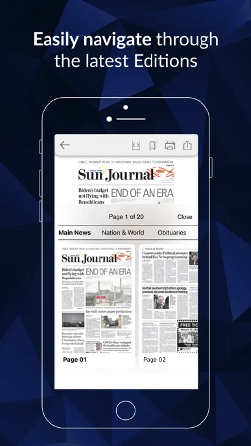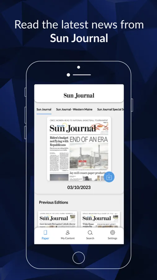 The Lewiston Sun Journal is the daily newspaper serving the Lewiston/Auburn area. The Lewiston Sun Journal e-Paper is an exact replica of the print edition, available on your mobile device each morning.The e-Paper is designed to highlight the best aspects of the print experience, with the convenience of a digital one. Flip pages, zoom-in on an article or photo, save, print and share articles, or catch up on news you may have missed in our archives. Happy reading.