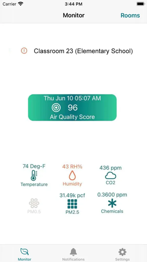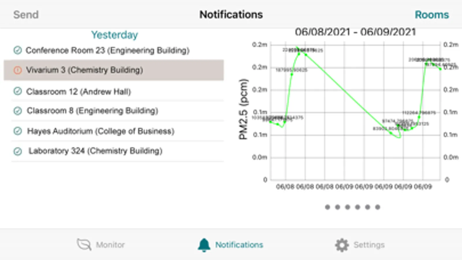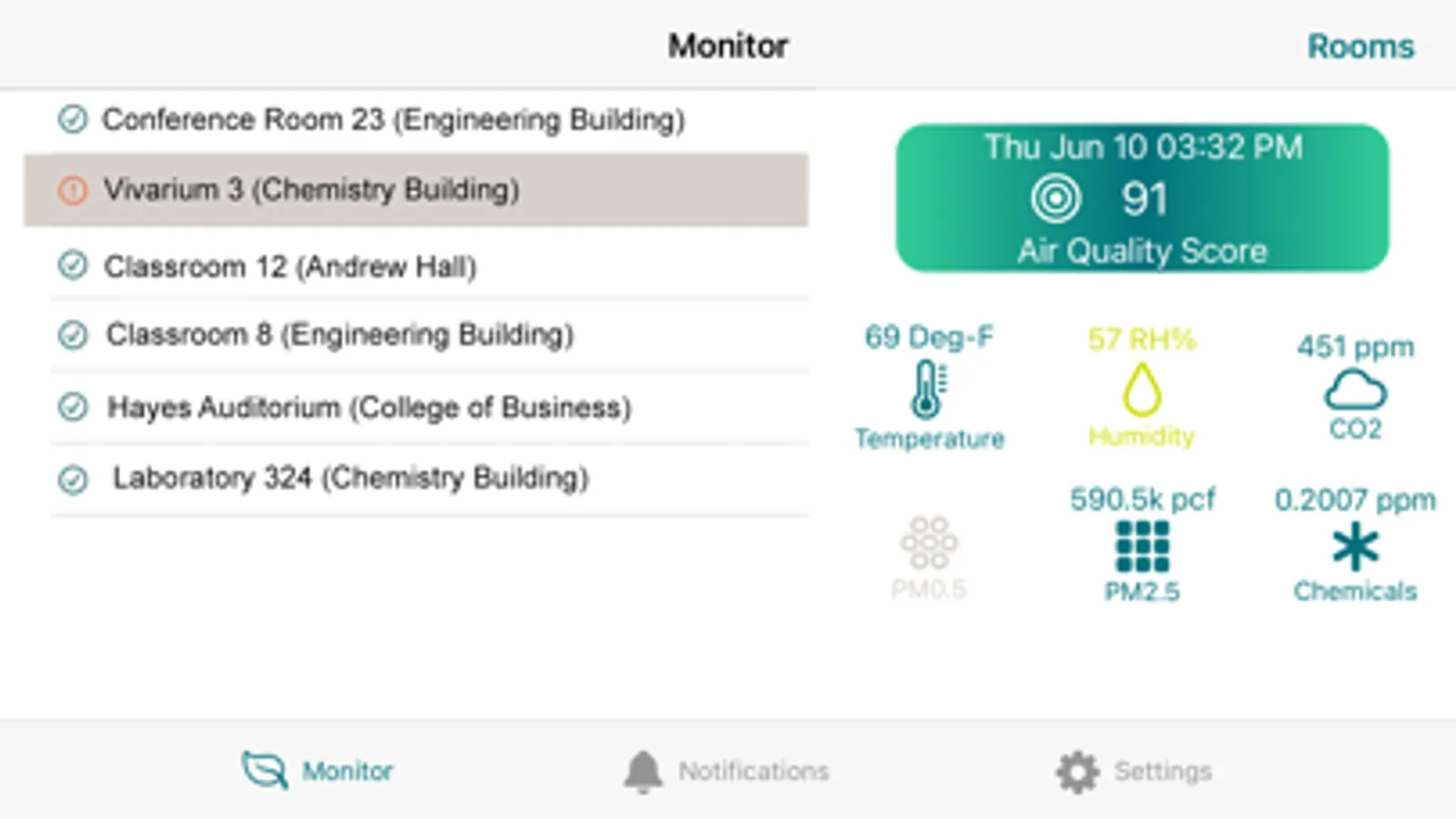 Aircuity Environmental Health & Safety provides alerts to users of the Aircuity System in commercial buildings when air quality (CO2, Particles, TVOC, Temperature, etc.) goes out of expected ranges.