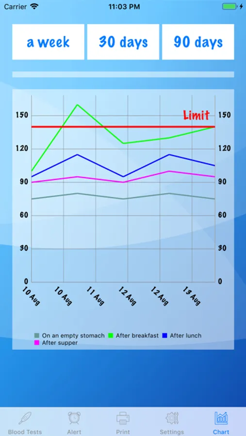 Bad memory or too much to do? Sure you've got more things to do then just keeping track of your blood tests. Alert feature to the rescue. Just switch it on after a meal and it will remind you when the time comes.