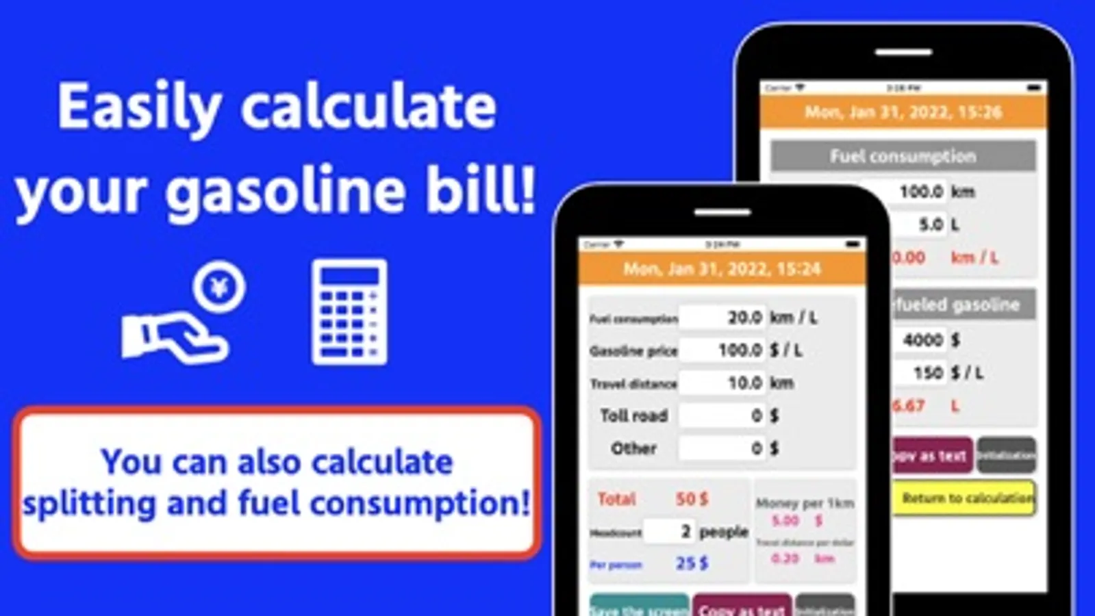 It is also possible to calculate the fuel consumption of a car and the amount of gasoline refueled.