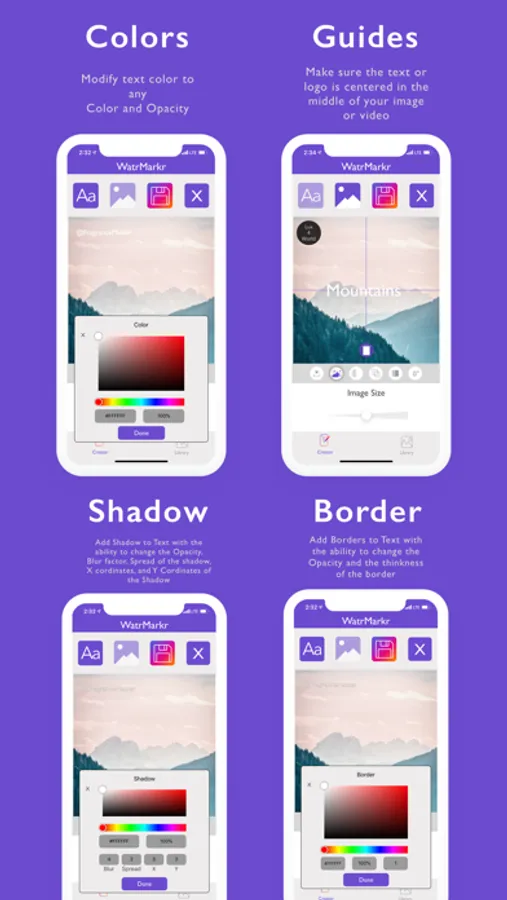 for indicating your mark. The app also features the ability to put several different watermarks