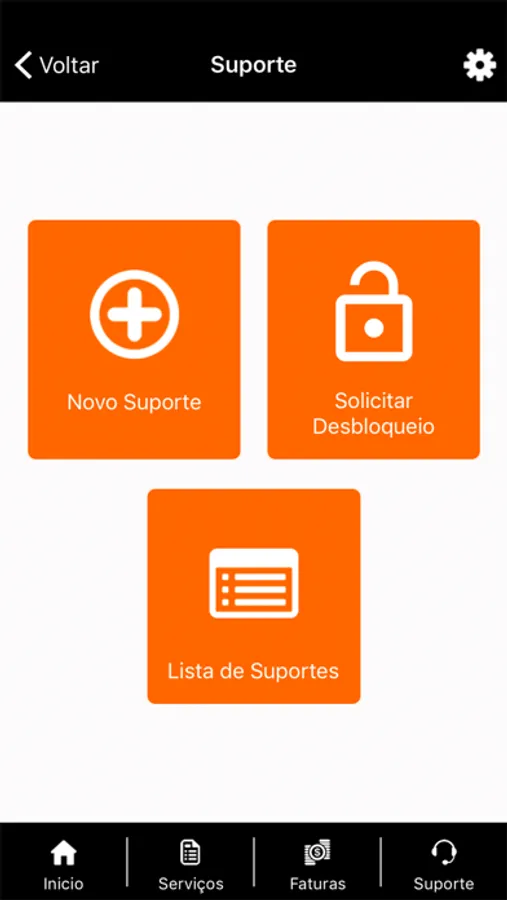 - Opção para acompanhar seus suportes ou iniciar um novo atendimento;