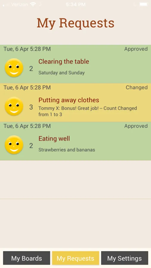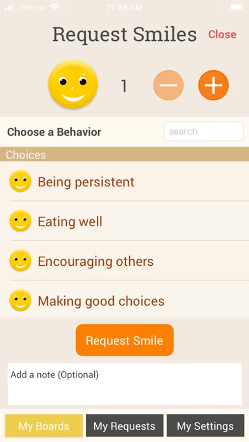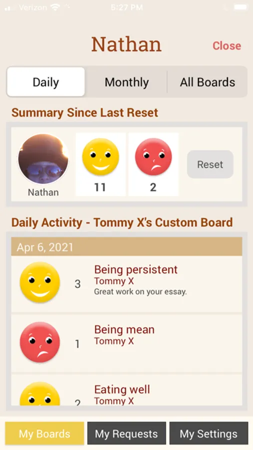 Kids View, the companion app to Smiles & Frowns that you can install a child’s device safely and securely, with no ads and no tracking. Your kids can now follow their progress any time they like for free, which really keeps them engaged and energized to keep improving their behavior. And with our premium Kids Requests feature, they can even start submitting their own Smiles and Frowns for you to review, which helps them own their behavior even more.