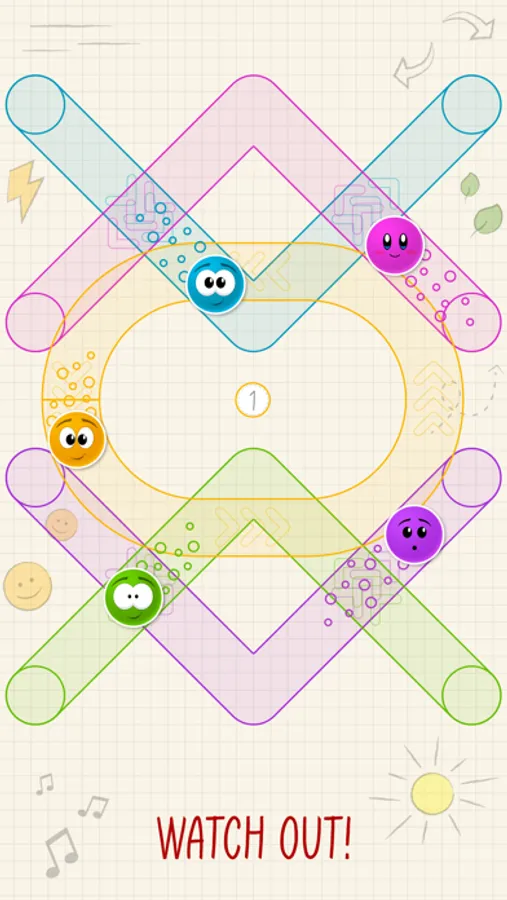 Tap to send out cute spheres on the shapes. Don't let them crash in this fun and challenging puzzle game with more than 150 levels.