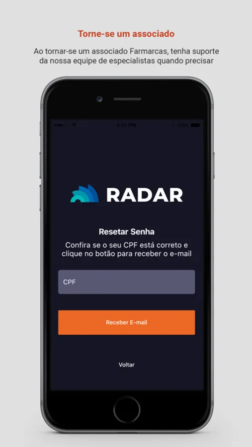Além disso, o Radar é uma ferramenta que facilita a gestão de drogarias associadas à Farmarcas. É possível você associar sua farmácia a nós! A Farmarcas fica encarregada de avaliar o perfil do novo usuário, enquanto ele tem acesso ao nosso acervo de informações, e entender nosso modelo de negócios.