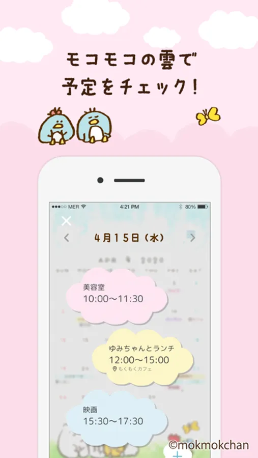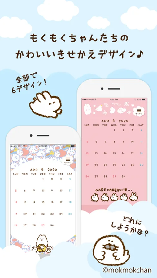 やさしい世界観で大人気の【もくもくちゃん】のカレンダーアプリです。