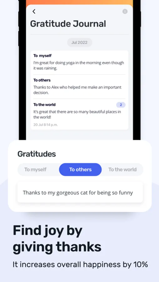 Practice gratitude to restore and strengthen your mental health and balance. Gratitude app has three sections: