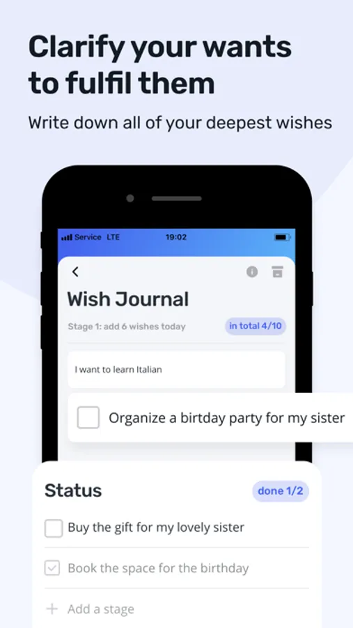 - Create your own list of goals and wishes.