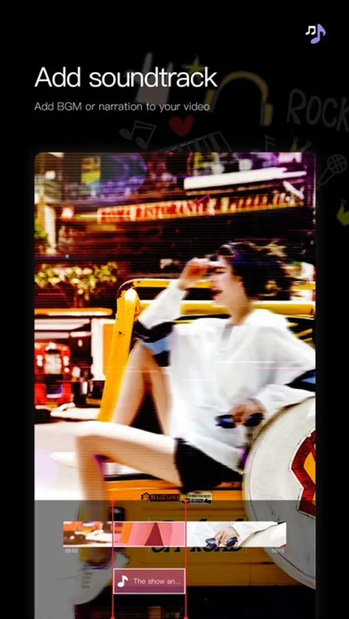【Background Sound Effect】Choose to remove the original audio and add background music; you can record narration for video; dozens of sound effects.