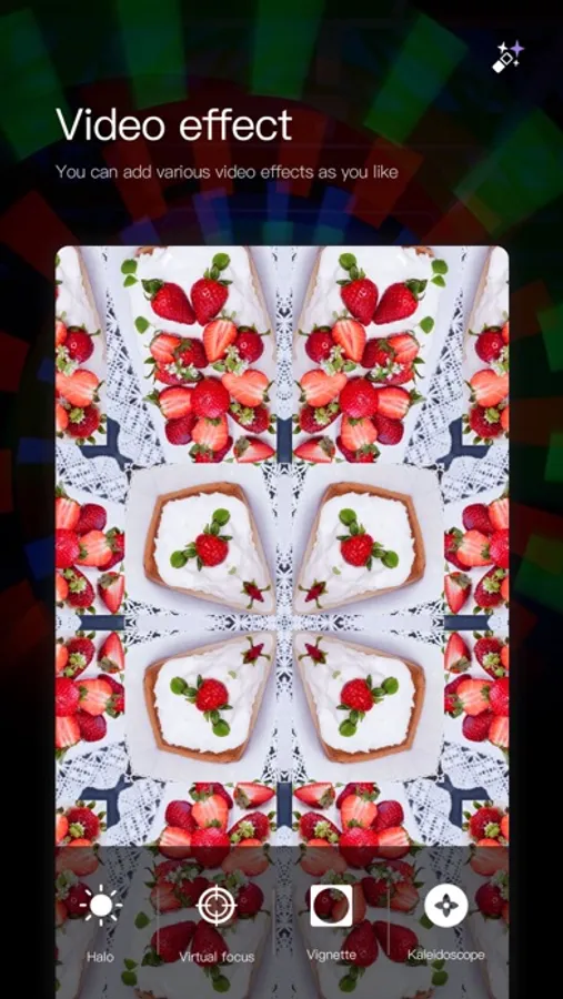 【Enhancement effect】Add halo, virtual focus, kaleidoscope and other enhancement effects to the video, and adjust the effect parameters according to the video demand.