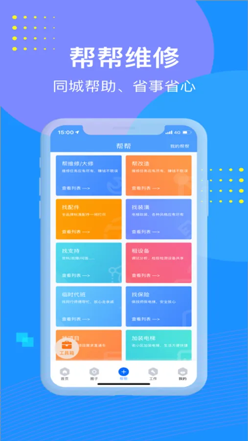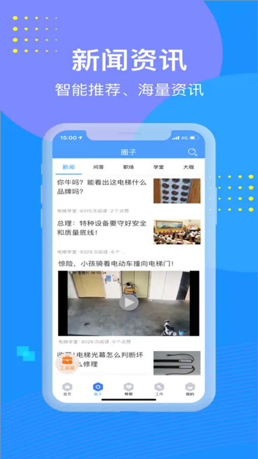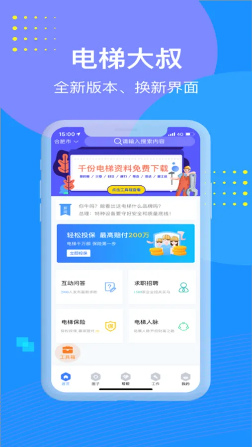 电梯大叔APP是一款技师移动工具。可以领取电梯的保养/维 修/投诉等任务,并记录处理的全过程,可实现灵活的电子保单模式。同时还提供电梯资料/维修教学/故障查询/在线问答/人员招聘/配件商城等圈子模块。