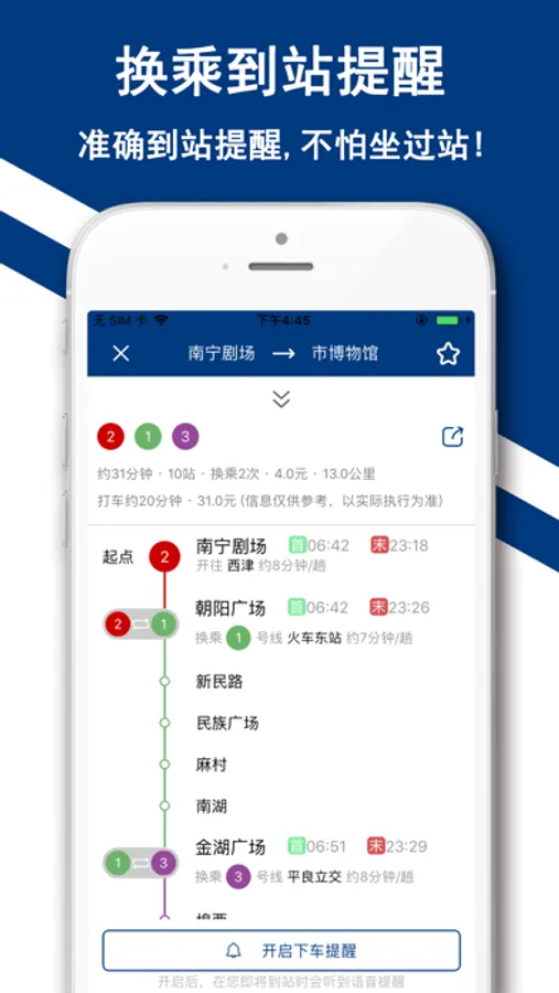 南宁地铁App,一款专业地铁出行智能助手。拥有2019南宁最新地铁线路图,查询推荐最优换乘线路,最新站点信息全掌握(含周边)等地铁出行信息和功能。