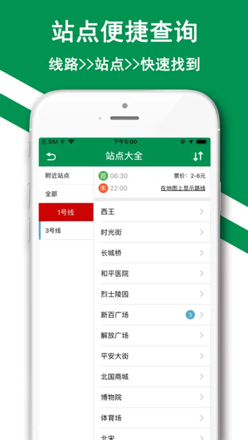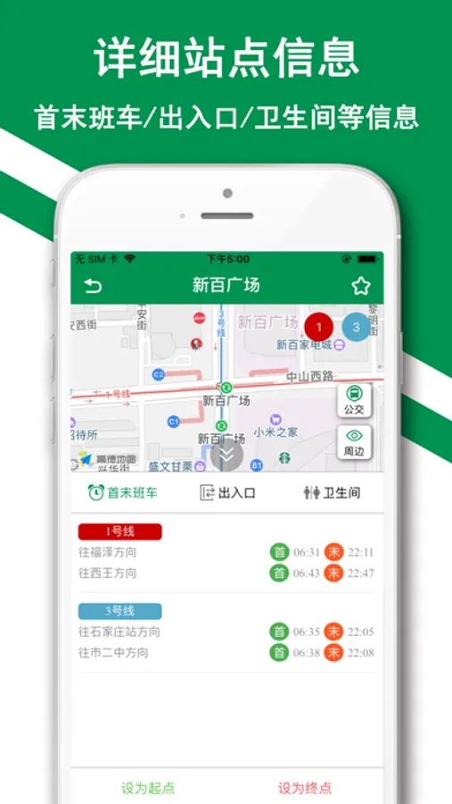 详细站点信息:站点首末班车时间,车站服务设施(卫生间和电梯等)、出入口信息等。