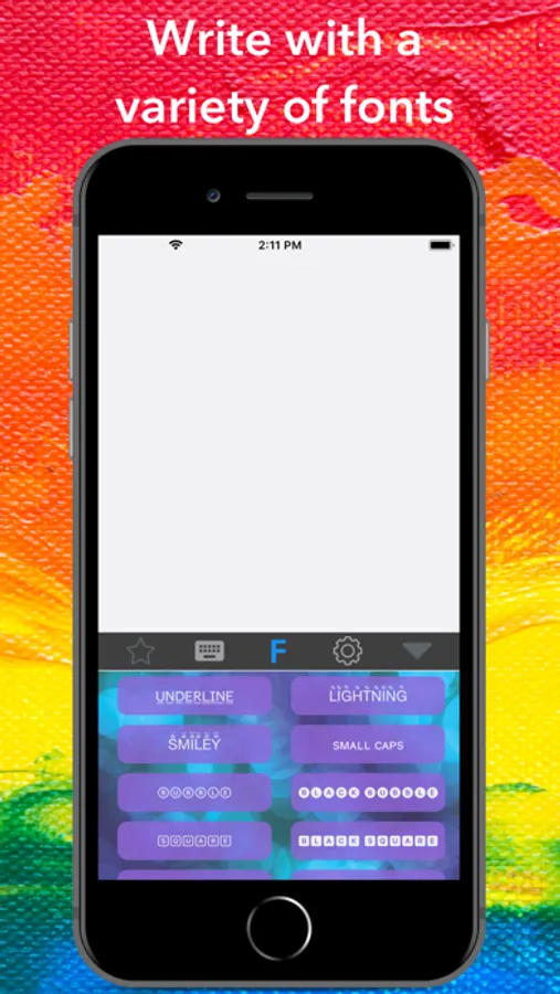 Enjoy all of our other features too! We expanded the normal keyboard to include extra characters like bullet points, symbols and other useful characters. Pick your favorite color scheme for the keyboard. Change the font of your text to bubbled, cursive, underlined, smileys and much more!
