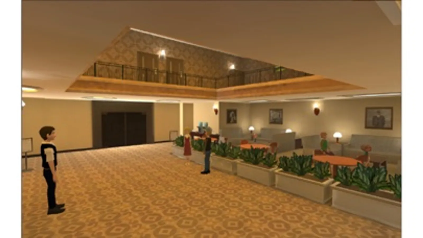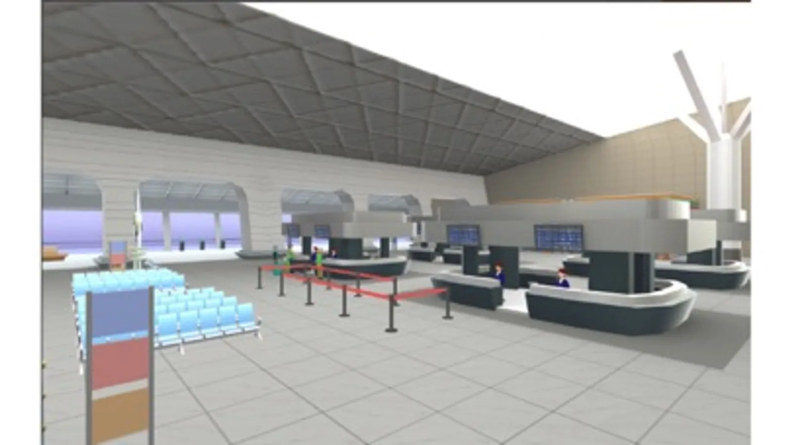 整個課程內計有機場大廳、便利商店、出境關卡、餐廳、機艙、諮詢服務台、過境旅館、航站捷運等8個3D虛擬場景及對話虛擬角色,每個場景內提供3個應答點,學生可自由選擇要由哪個關卡開始。過程中,虛擬角色將會以英語提問,學生可依題型方式予以答題。