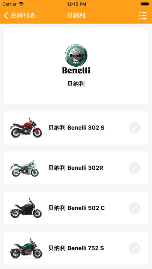 展示摩托车品牌列表,帮助用户更容易找到目标车款,查看参数。