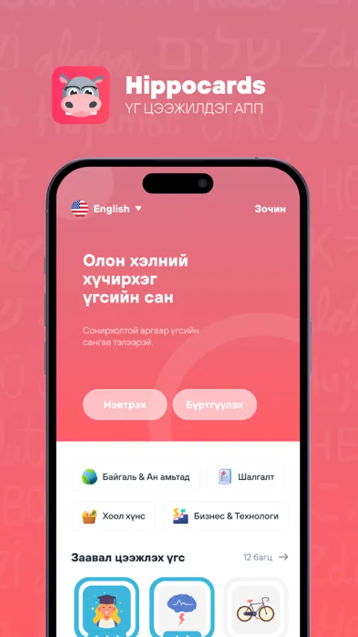 Гадаад хэл сурах амархан боллоо. Hippocards бол бүх насны хүмүүст зориулсан гадаад хэлний үг цээжилдэг супер аппликейшн юм.