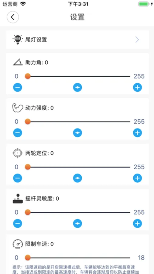 Sorfen-Plus is a mobile application for Bluetooth to communicate with a balanced car. The configuration information of the vehicle can be viewed through the mobile phone, including its mileage, speed, etc. The vehicle parameters can also be set through the mobile phone, such as the elevation angle, lights, etc., to make the vehicle information more accurate and convenient.