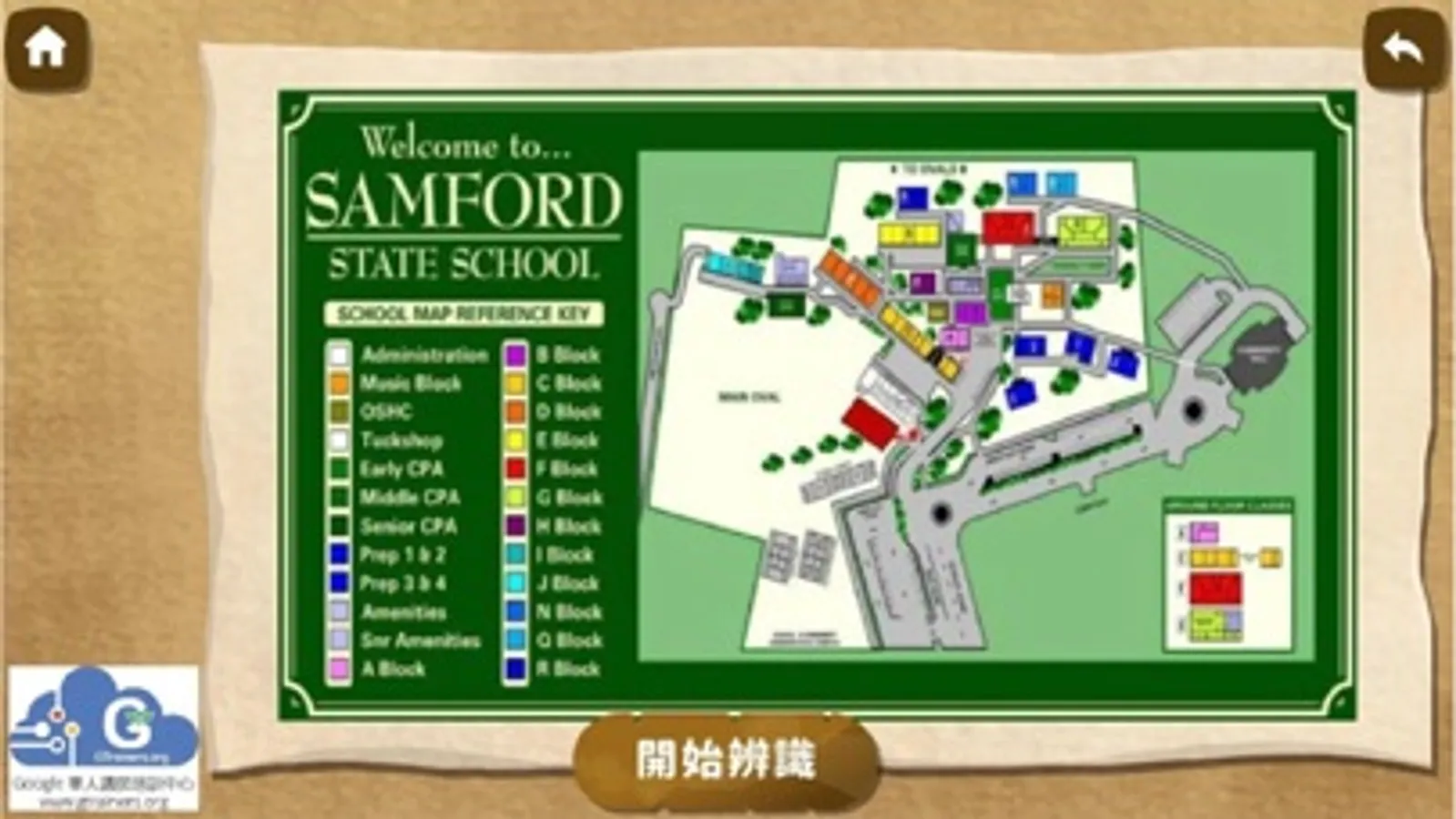 課程學習的場景擴大至整個校區,學生可以結伴在校區內到處尋寶,在尋寶的過程中,除了認識了整個校園的環境外,還能認識校園內所有人、事、物的英文名稱與說明。