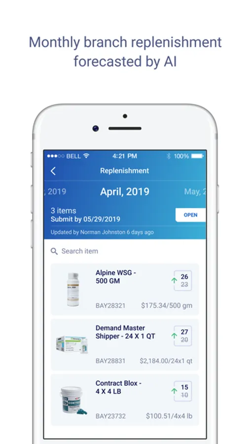 Application for Forshaw customers for efficient management of product stocks