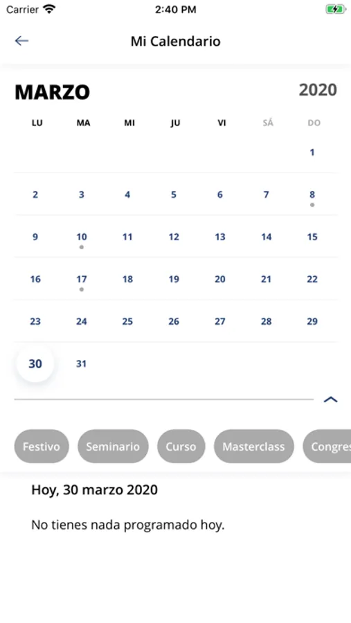 • Calendario universitario: Desde la app podrás acceder a tu calendario académico y conocer todos los eventos de la universidad.
