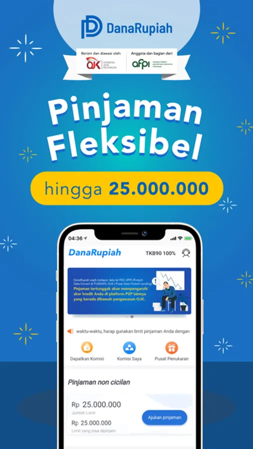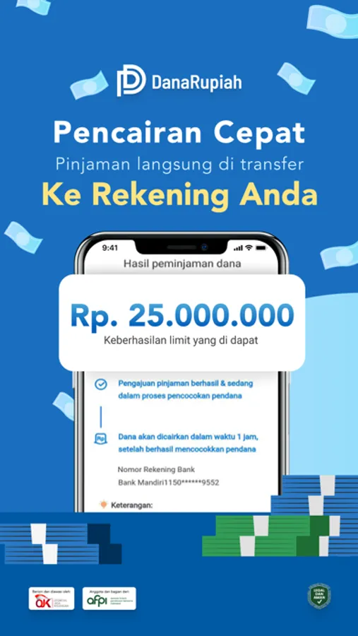 DanaRupiah merupakan aplikasi pinjaman tunai online tanpa agunan. ajukan pinjaman tunai secara online hanya dalam hitungan menit. Hanya perlu KTP, dana akan segera cair. Pinjaman yang diajukan akan segera masuk ke rekening Anda setelah melewati verifikasi.