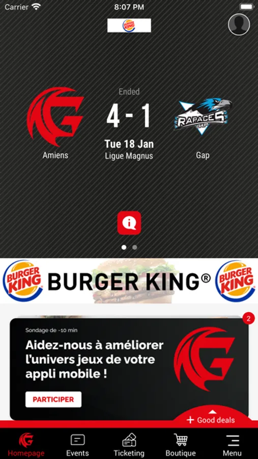 - Venir aux matchs, répondre aux sondages et participer aux jeux vous rapportent des points
