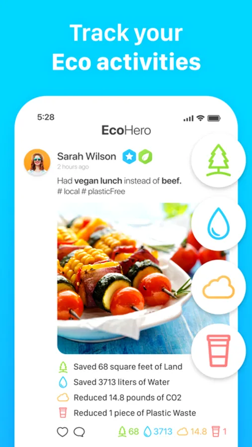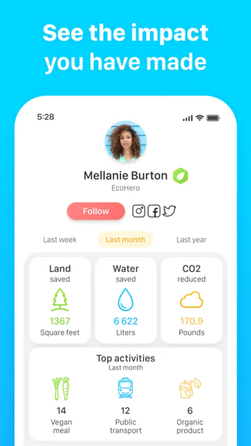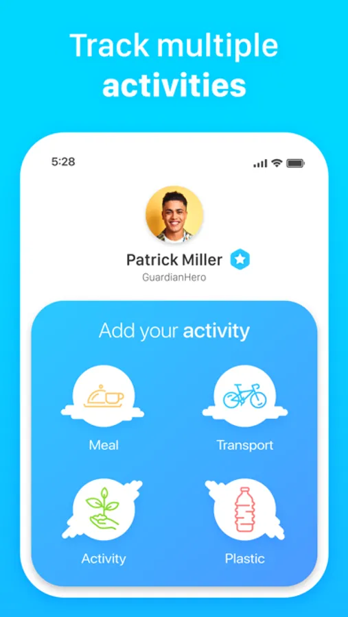 • Track your meals, transport, plastic usage and all kinds of eco activities.