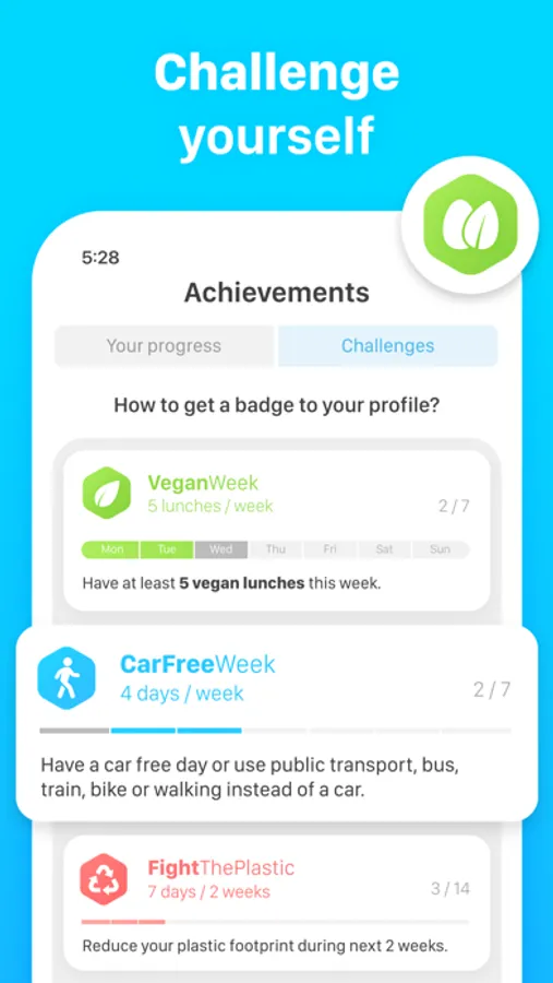 • Complete the “car-free week” challenge and receive an extra badge.