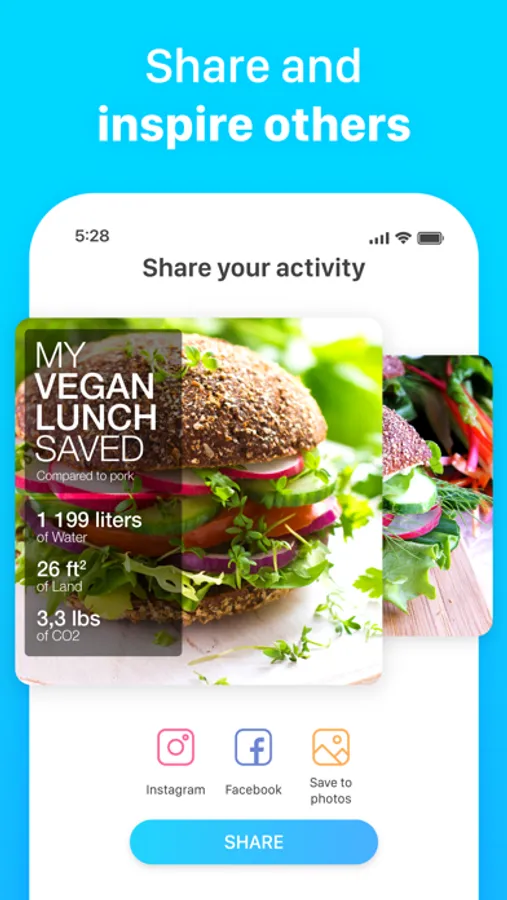 • See the footprint difference between vegan, vegetarian, fish and meat meals.