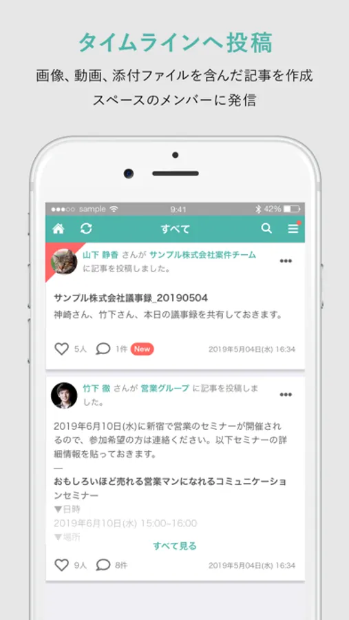 In addition, if you post it as an "important article", "notice" will be pushed and notified to the shared area. This will prevent missing people and promote smooth communication.