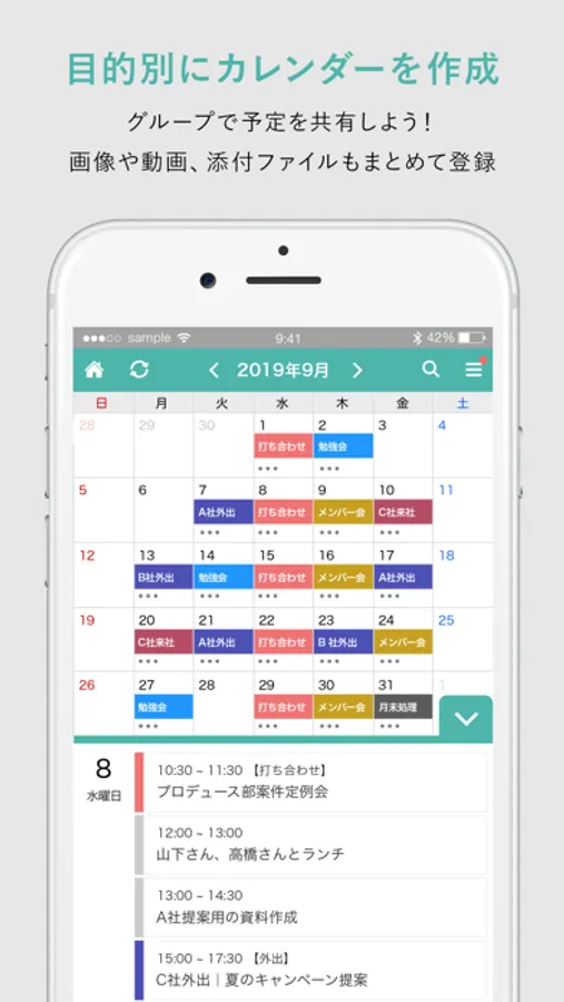 In addition to date, time and participants, event information can be registered together with images, videos and attachments.
