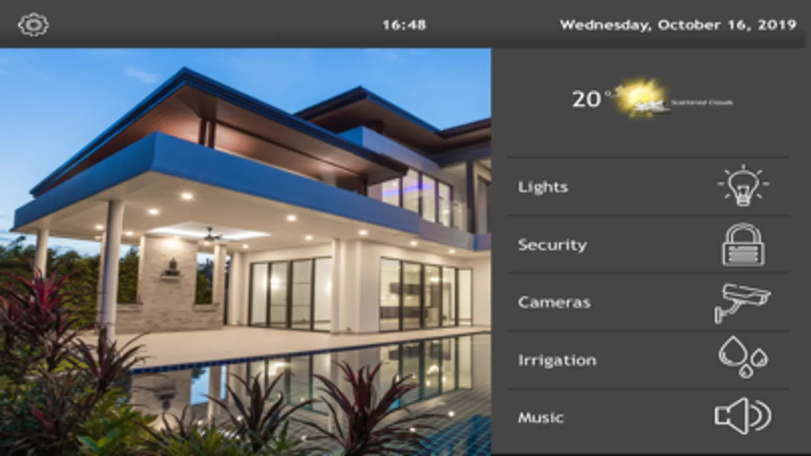 Manage your integrated domotics such as lights, motors, security, climate systems, security cameras and entertainment!