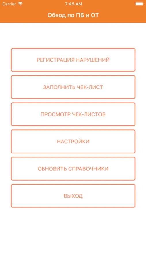 - автоматизированной (по команде пользователя) передачи данных по обходам (чек- листы/нарушения) в ИС «ПБиОТ»