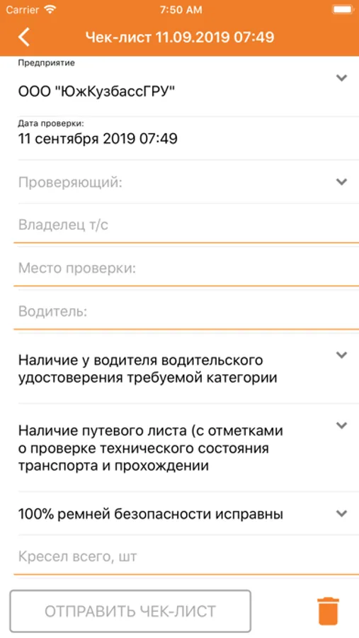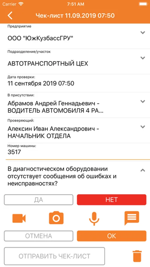 - бланки заполненных чек-листов с привязкой ко времени осмотра и сотруднику, производившему заполнение;