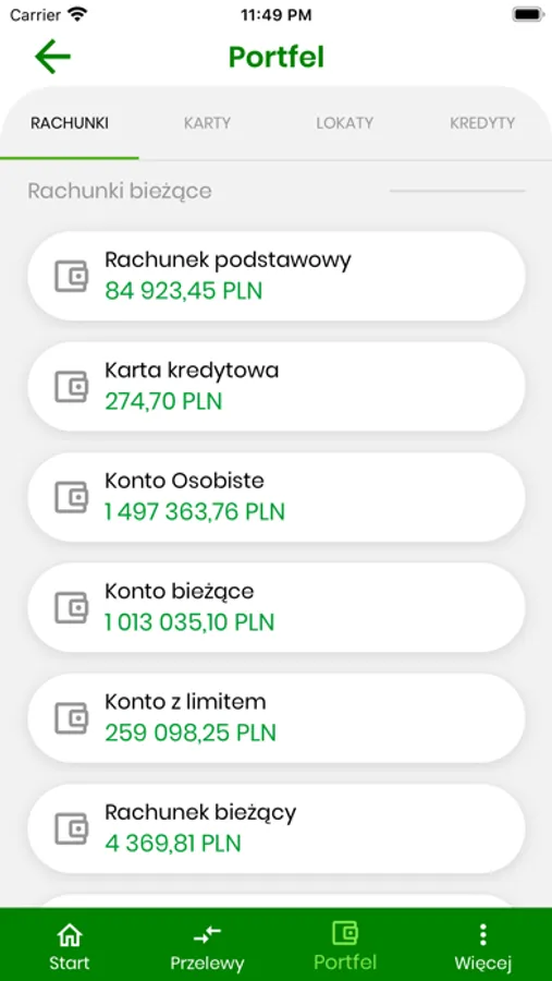 - prezentowanie rachunków, kart, lokat i kredytów klienta,