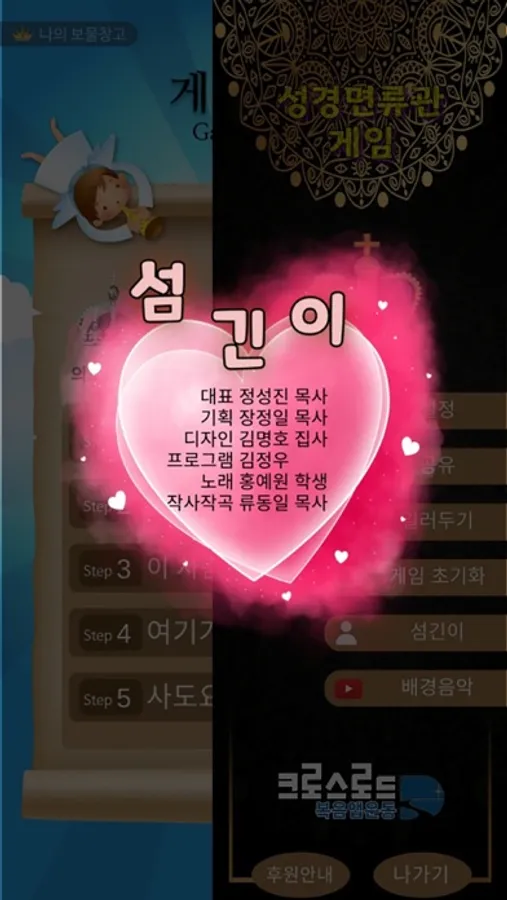 - 각 면류관에 5가지 주제(예수님은 누구신가요. 성도의 바람직한 성품, 이 사람은 누구인가요. 여기가 어디인가요. 사도요한이 본 계시)에 맞는 성구를 제시하고 성구에서 빈칸에 맞는 단어를 입력하여 정답을 맞춰서 면류관을 완성해 가는 게임입니다.